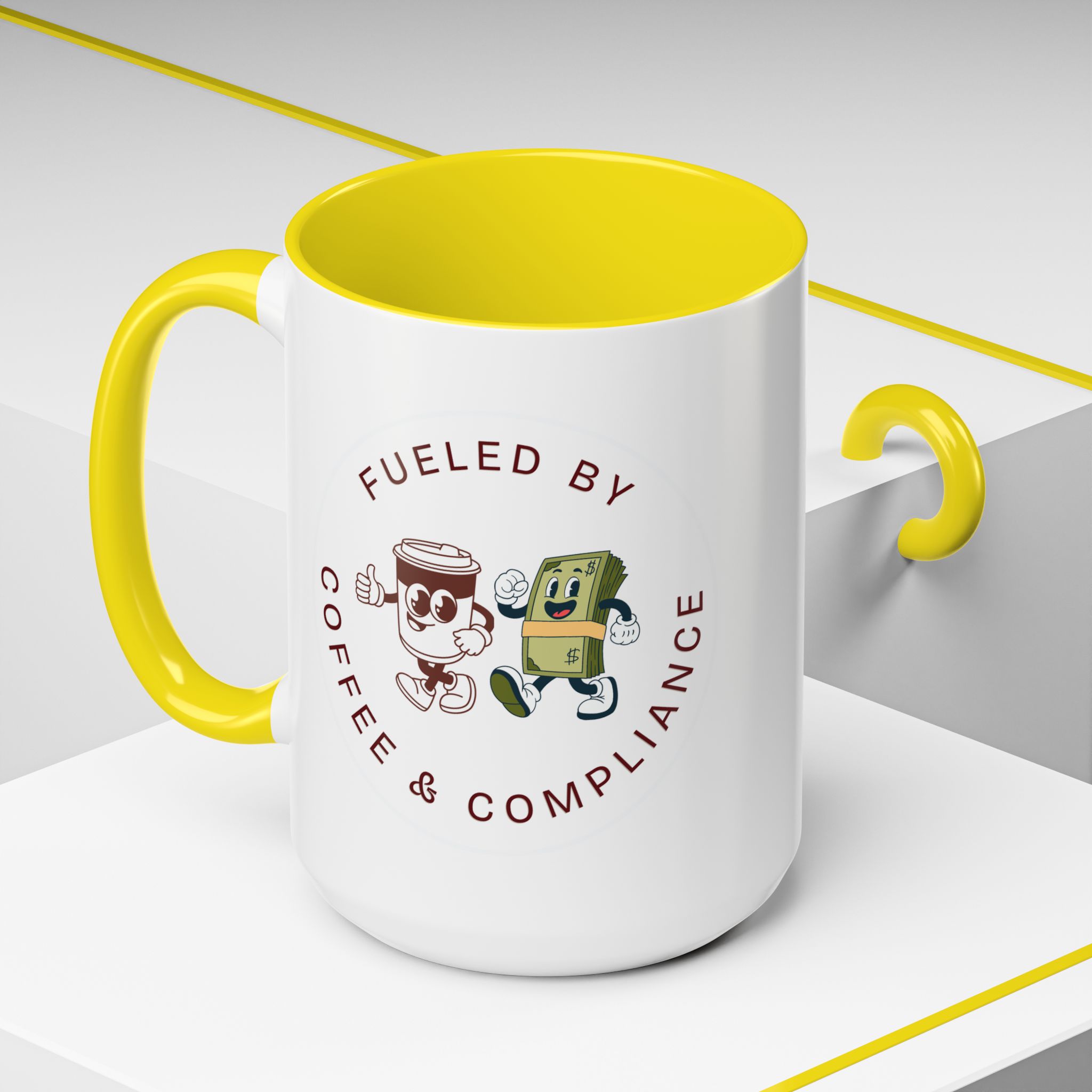 Meet your next favorite morning companion, the accented ceramic mug. This mug brings the perfect blend of style and functionality to elevate your coffee or tea ritual. Available in two generous sizes, 11oz (0.33 l) and 15oz (0.44 l), this mug offers ample space for your favorite brew. Made with white ceramic and sporting a sleek glossy finish with eye-catching contrast, this mug is a bliss both to use and to look at. The ergonomic C-shaped handle provides a comfortable grip, while the lead and BPA-free construction guarantee peace of mind with every sip.